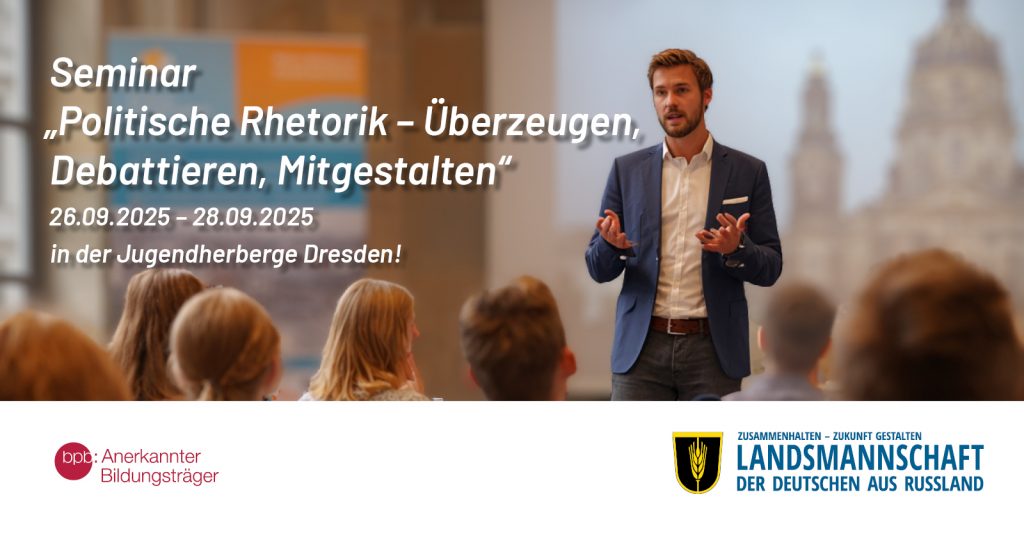 Dann sei dabei bei unserem dreitägigen Seminar „Politische Rhetorik – Überzeugen, Debattieren, Mitgestalten“ in der Jugendherberge Dresden!